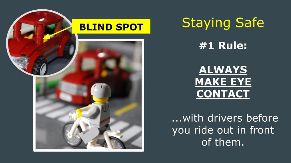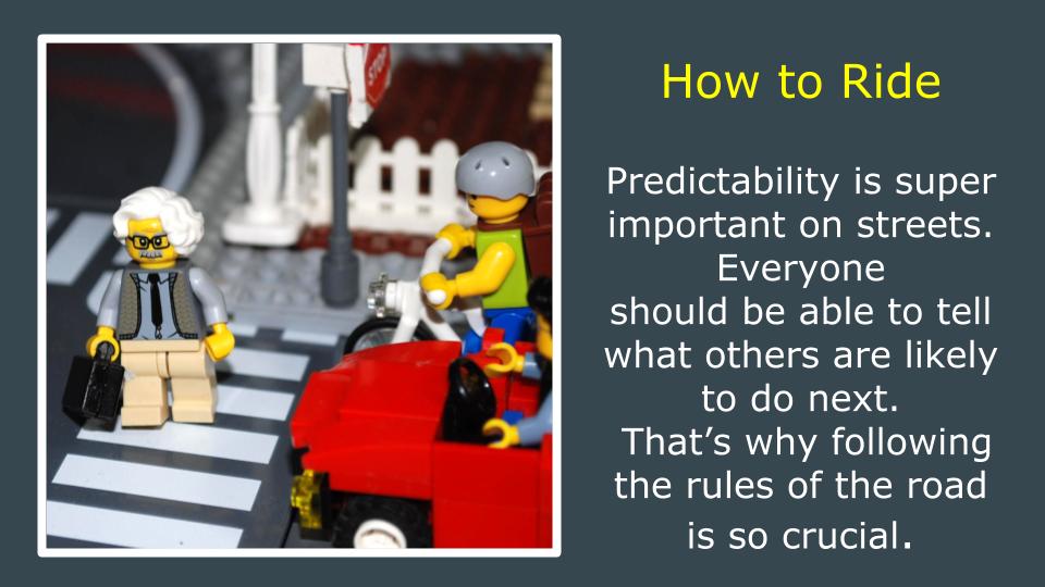 Fortunately, Palo Alto School District’s Safe Routes to School Coordinator Rosie Mesterhazy saw this LEGO®-inspired bike/safety presentation floating around on social media, realized its potential and graciously volunteered to help bring it up to Palo Alto’s rigorous bike/ped education standards. With the benefit of Rosie’s experience and expertise, the presentation was transformed into the more organized, effective and efficient version of itself it is today. Palo Alto’s version of this presentation, ‘STREET SMART Palo Alto’ is viewable at: https://www.cityofpaloalto.org/civicax/filebank/documents/78139.